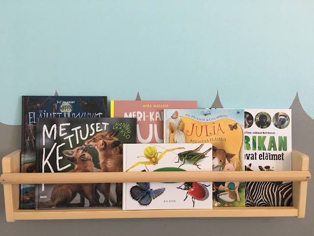 Eläimistä kertovia tietokirjoja julkaistaankin melko paljon. Esittelen seuraavaksi seitsemän viime vuonna ilmestynyttä eläinkirjaa. Osassa kirjoissa lähestymistapa on tarinallinen, ja tietoa tulee ikään kuin tarinan ohessa sekä sivujen lomaan sovitetuissa faktalaatikoissa. Tällaisia, vuonna 2020 julkaistuja faktiokirjoja ovat muun muassa pienille leikki-ikäisille suunnattu Julia rakastaa eläimiä, eläinten nukkumistapoja esittelevä Miten eläimet nukkuvat, maailman karhulajeihin keskittynyt Meri-karhun suuri suku ja kettujen elämää kuvaava Me kettuset. Myös afrikan eläimistä kertovassa Afrikan kiehtovat eläimet -kirjaan on ujutettu tarinallisia elementtjä sekä lyhyitä eläintarinoita lajiesittelyiden lomaan.